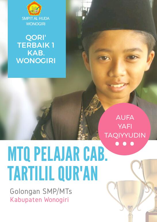 Alhamdulillah wa barakallah atas prestasi santri ananda Aufa Yafi Taqiyyudin yang menjadi Qori’ Terbaik 1 dalam MTQ Pelajar Cab. Tartilil Qur’an gol. SMP/MTs tingkat Kabupaten Wonogiri.